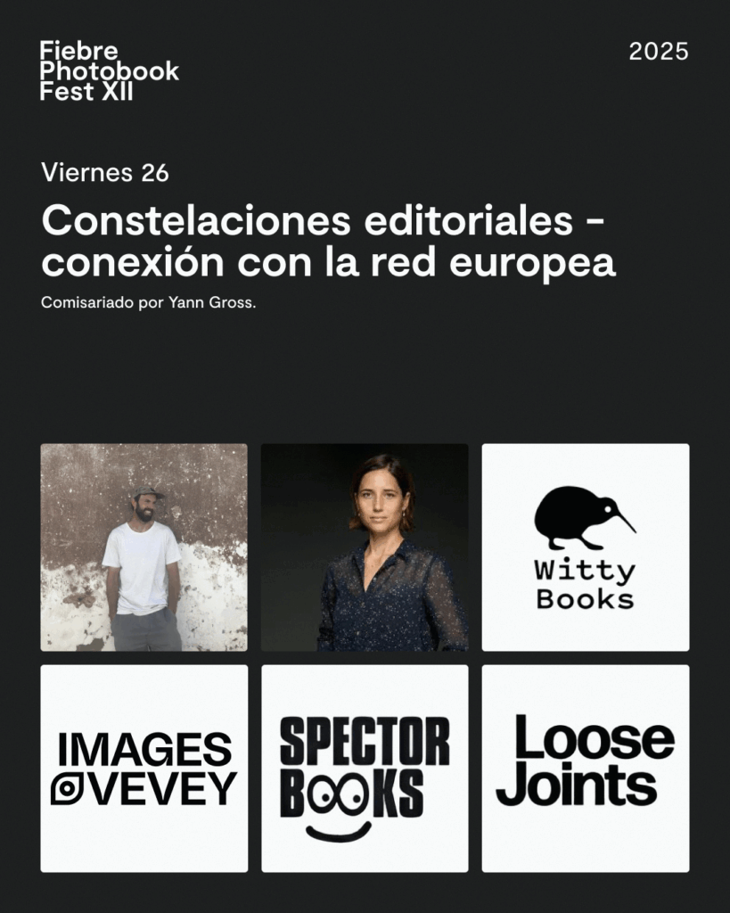 La tarde continuará con una conversación coral en ‘Dar forma al fotolibro: visiones editoriales, colaboración y realidades materiales’, donde cuatro editoriales de referencia en Europa —Witty Books, Vevey Images, Spector Books y Loose Joints— debatirán sobre los caminos posibles de la edición, la relación con los artistas y los retos prácticos que enfrentan como el diseño, la producción y los modelos de financiación.