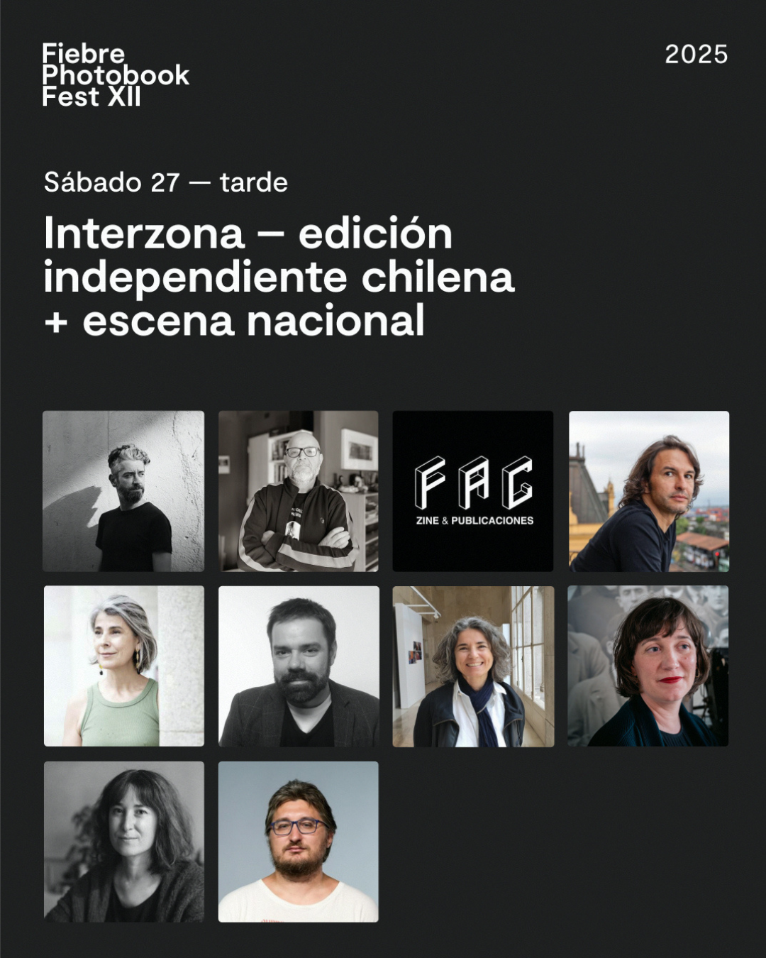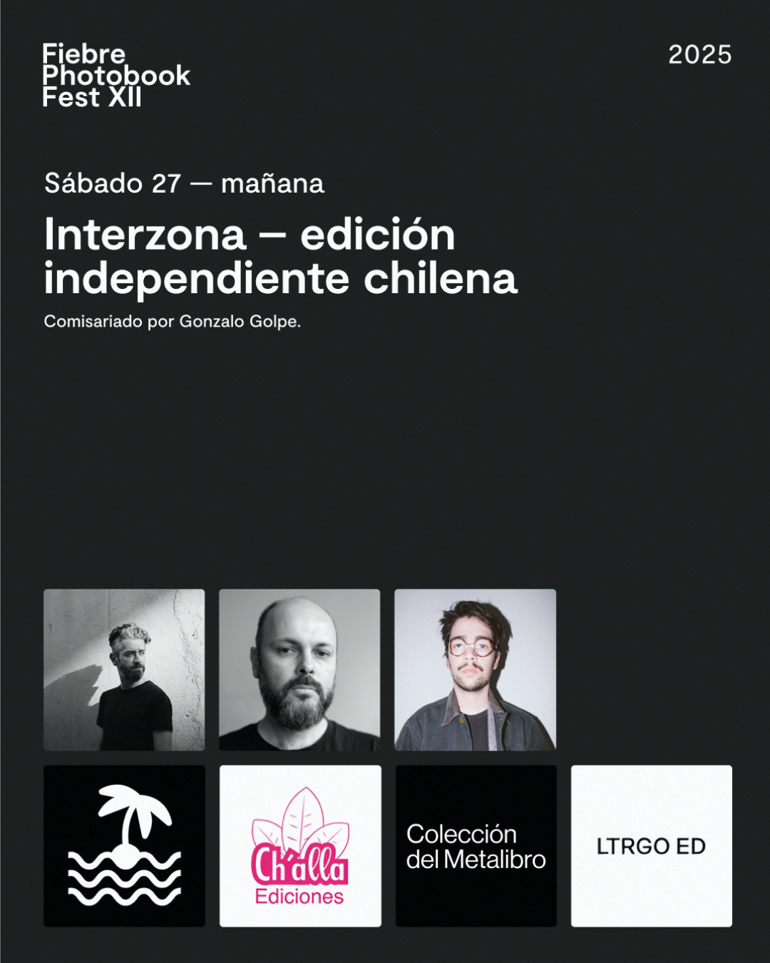 El sábado estará dedicado al ciclo Interzona, comisariado por Gonzalo Golpe, que pone el foco en la efervescente edición independiente chilena. La mañana comienza con ‘Fotolibro político chileno’, un recorrido por la dimensión social y crítica del medio a cargo de Jorge Gronemeyer, fundador de Gronefot. A esta conversación, le seguirá ‘Abrir la herida, resistir el hastío. Una mirada al fotolibro contemporáneo en Chile’, donde el fotógrafo Felipe Muñoz explorará cómo los fotolibros recientes en Chile convierten la angustia y el dolor en propuestas colectivas y transformadoras.