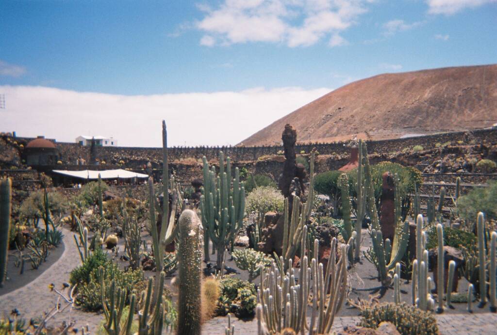 Ubicado en una antigua cantera de ceniza volcánica, el Jardín de Cactus reúne más de 4.500 ejemplares de 450 especies diferentes, procedentes de los cinco continentes. En este espacio, César Manrique volvió a demostrar su habilidad para integrar arte y paisaje: terrazas escalonadas, piedra volcánica y un molino tradicional restaurado se combinan en una composición armoniosa que realza tanto la flora como el entorno.