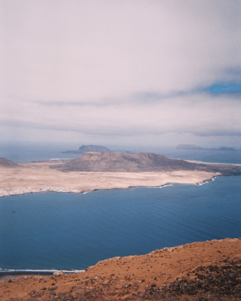Situado a 475 metros de altitud sobre el nivel del mar, el Mirador del Río se integra de forma casi imperceptible en el entorno rocoso del Risco de Famara. Desde su terraza acristalada, se despliegan unas vistas espectaculares del Archipiélago Chinijo, con la isla de La Graciosa emergiendo del océano como un espejismo dorado suspendido sobre el Atlántico.