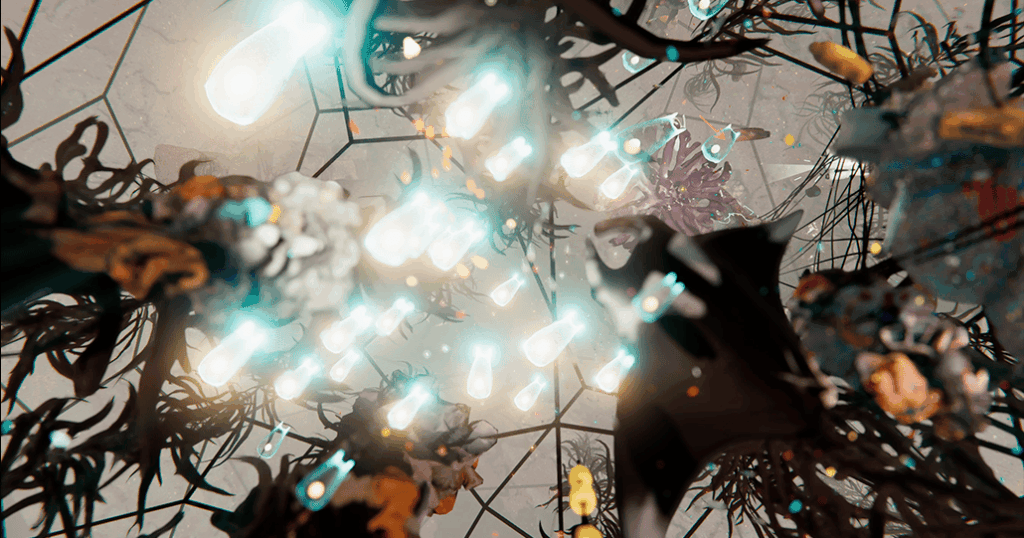 El artista griego Theo Triantafyllidis propone Drift Lattice, una instalación que simula un ecosistema marino donde la vida acuática convive con residuos sintéticos. La obra responde a datos climáticos y ecológicos en tiempo real, reflejando el impacto humano en los océanos y fomentando la reflexión sobre los límites entre entornos naturales y artificiales.