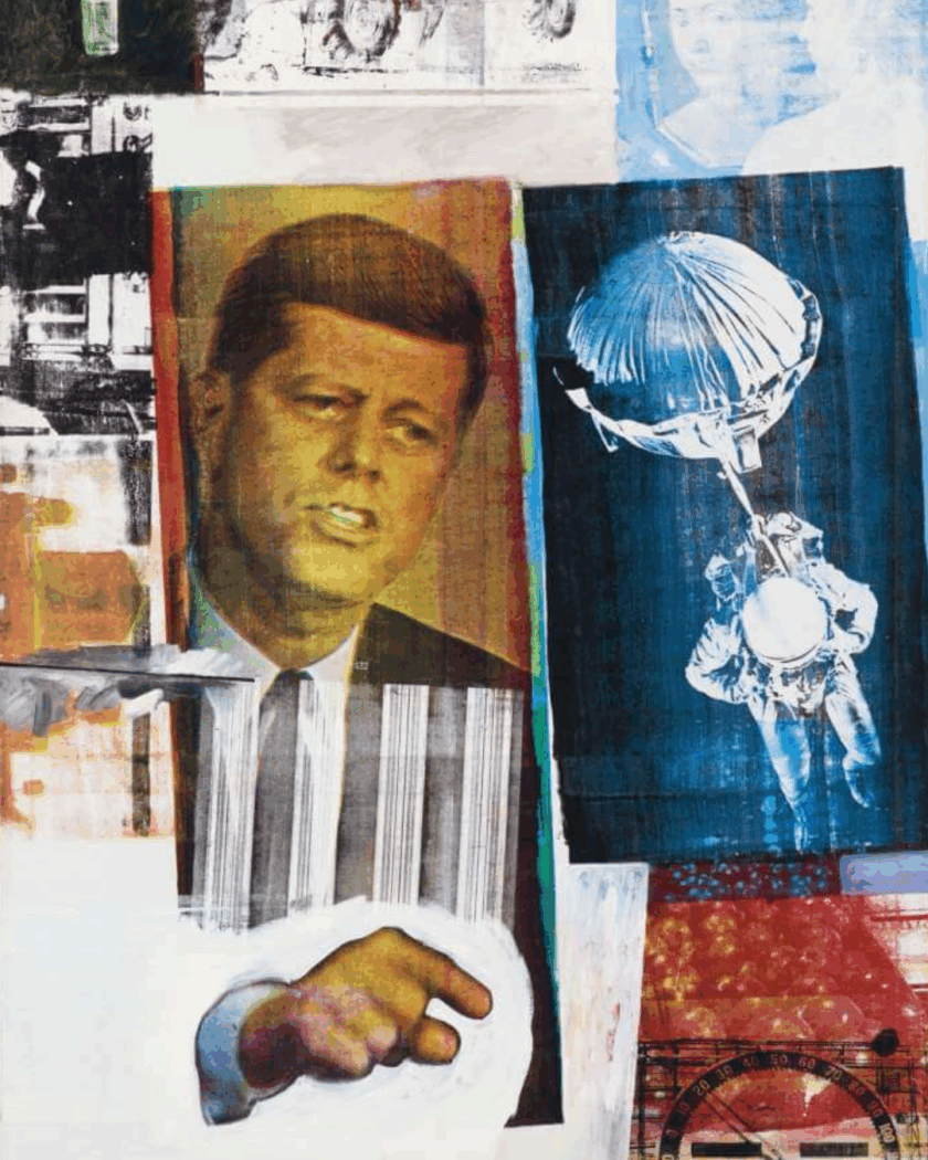 En los años 60, su trabajo evolucionó hacia nuevos soportes y tecnologías: el uso de la serigrafía le permitió incorporar imágenes de actualidad —astronautas, señales de tráfico, anuncios— en composiciones que mezclaban crítica y fascinación por la cultura de masas. Sin declararse abiertamente parte del pop art, su obra fue una de las principales influencias para artistas como Andy Warhol, Jasper Johns o Claes Oldenburg. Pero Rauschenberg no imitó el mundo de los medios: lo absorbió, lo transformó y lo devolvió como arte.